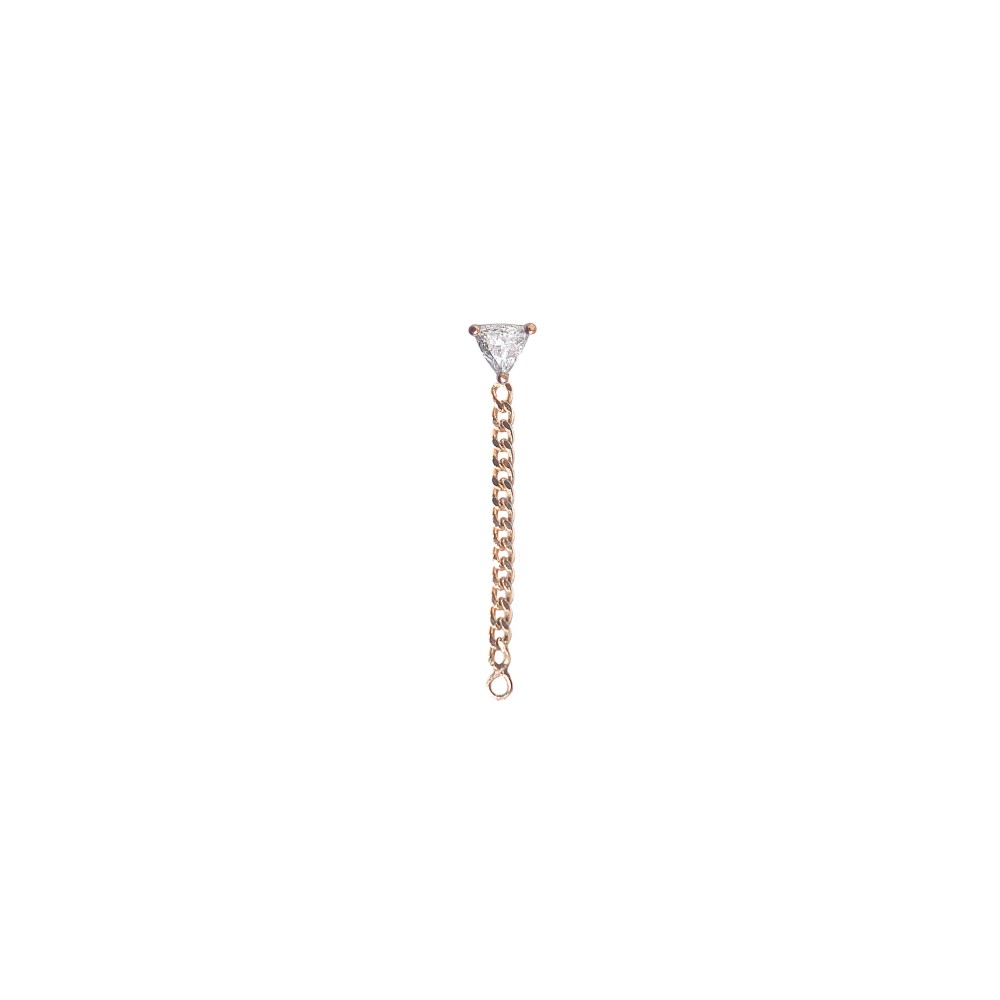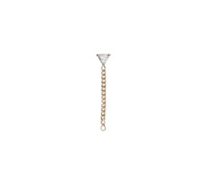La boucle d’oreille Just Joy Lucky, surmontée d’un diamant taille triangle est un bijou rock ultra tendance qui ne vous quittera plus. Accrochez l’anneau à l’extrémité de la petite chaîne à la tige de votre boucle d’oreille préférée. Vous n’aurez plus d’excuses, grâce à cette création, vous serez toujours super looké.e !
