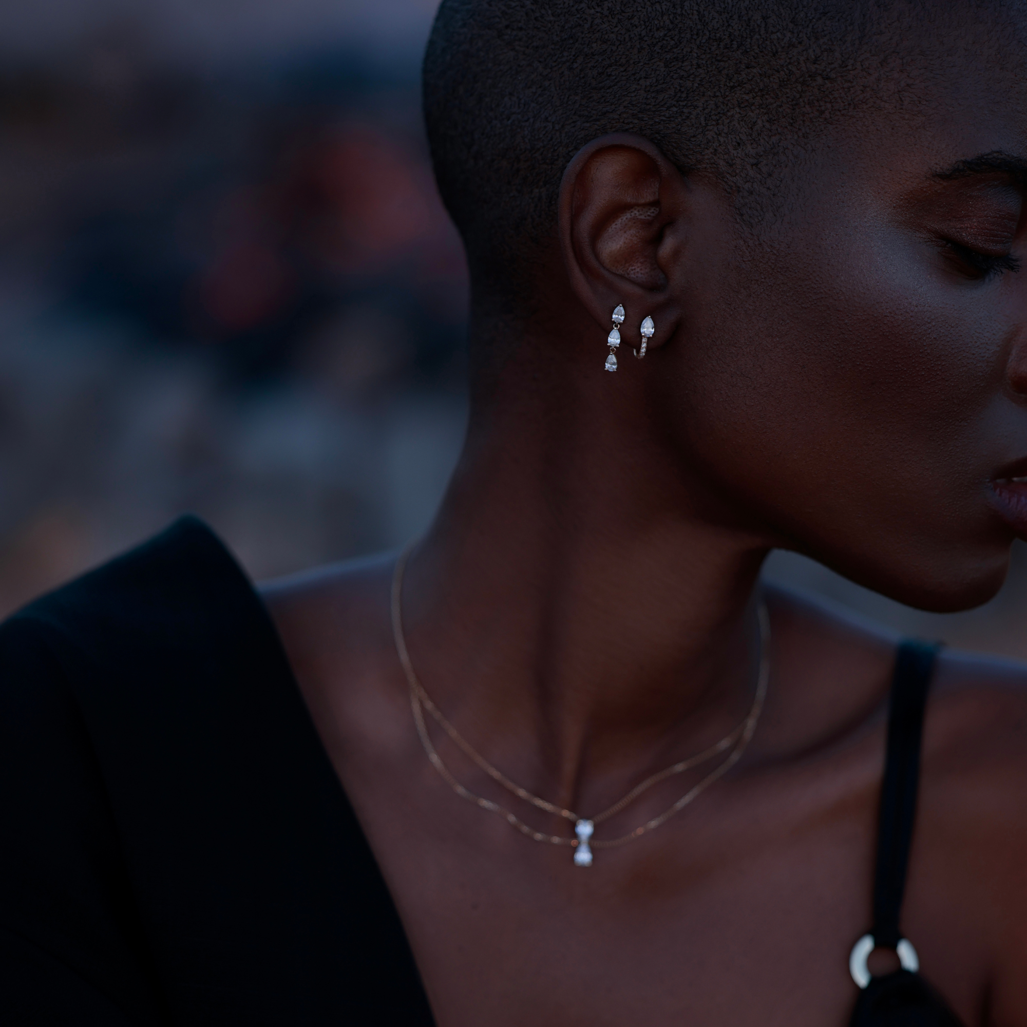 La boucle d’oreille Just Joy Trilogy, ornée de trois diamants taille poire de 0.25 carats chacun, apportera chic et élégance à votre tenue. Discrète, elle se porte aussi bien au quotidien que lors d’occasions particulières.