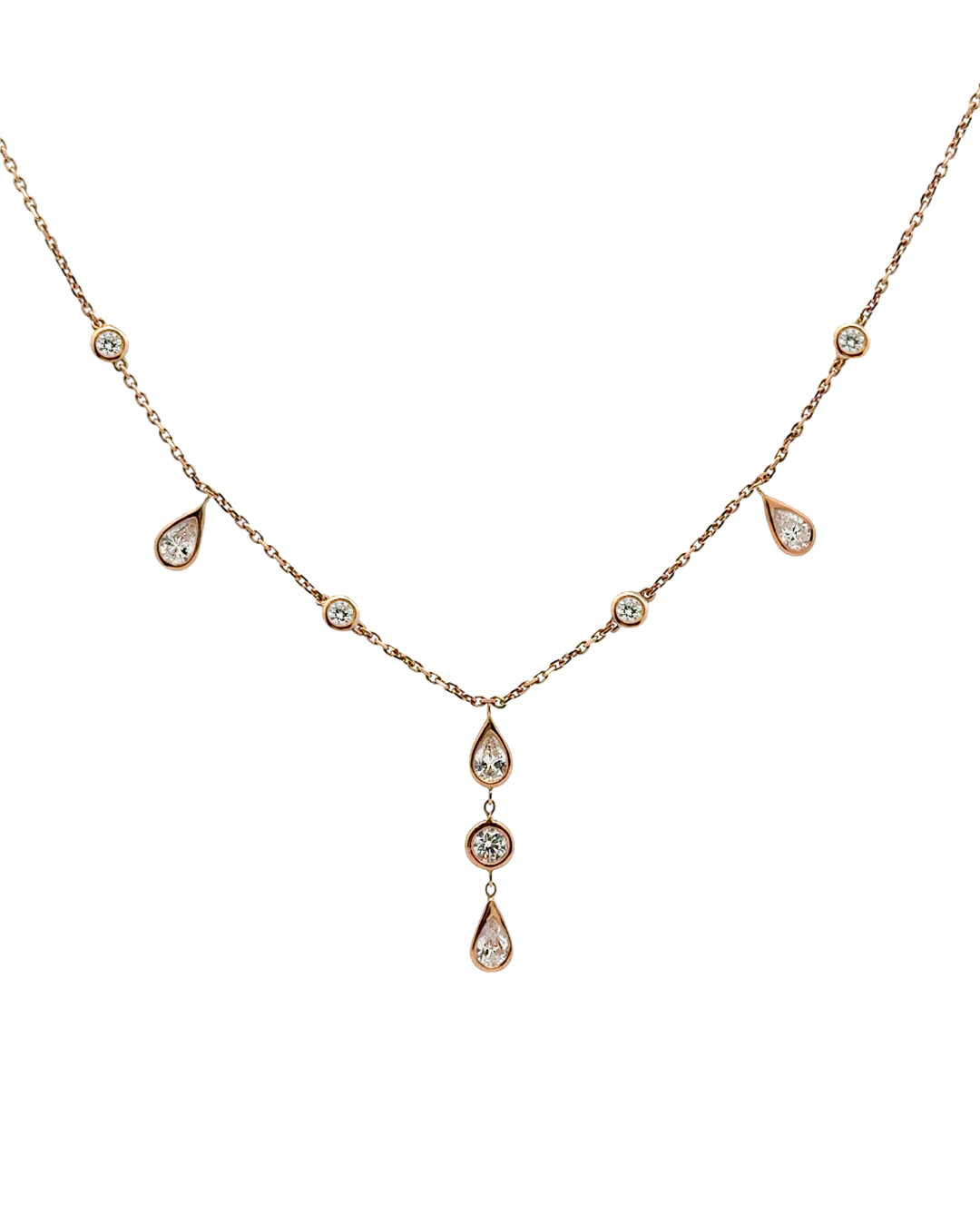 Collier Grace en Or 18 carats (750/1000e) 3,4g, serti de diamants taille poire et brillant, 1.45 carats.