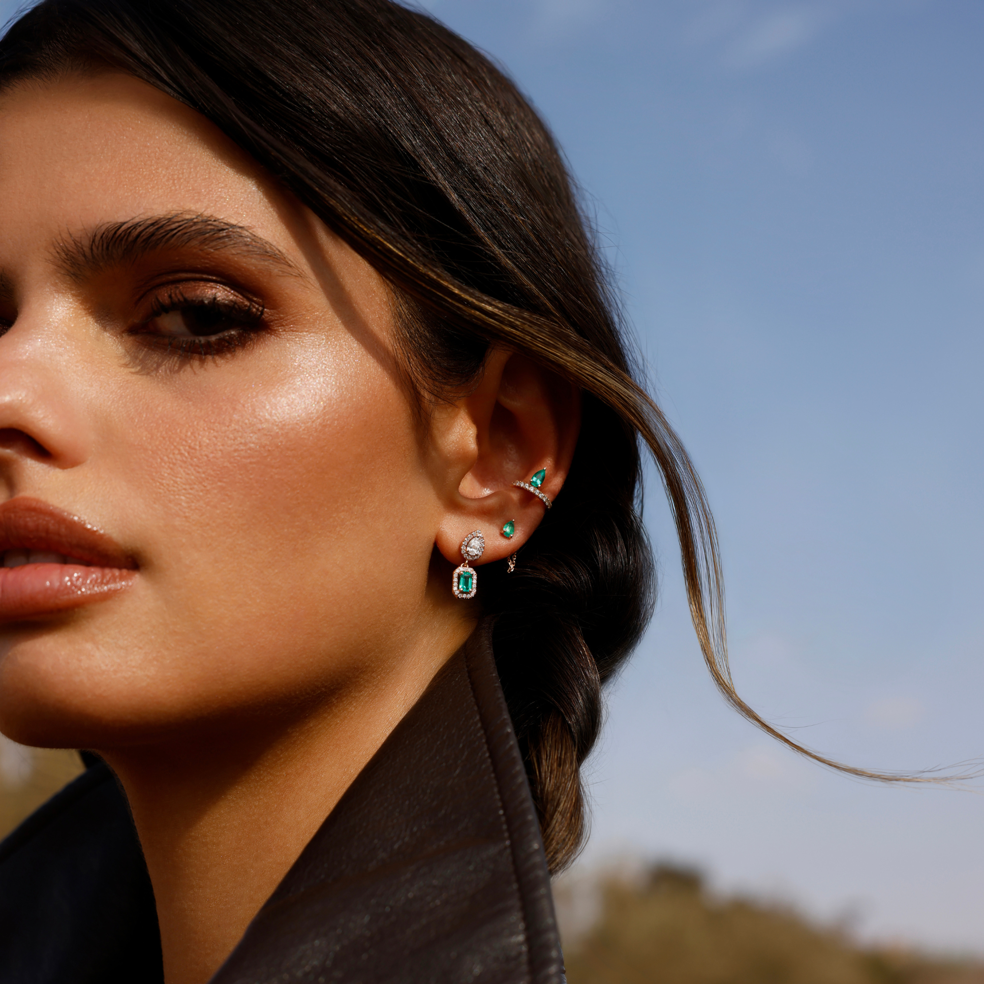 Sur cette boucle d’oreille Mila Twist Pear Emeraude,