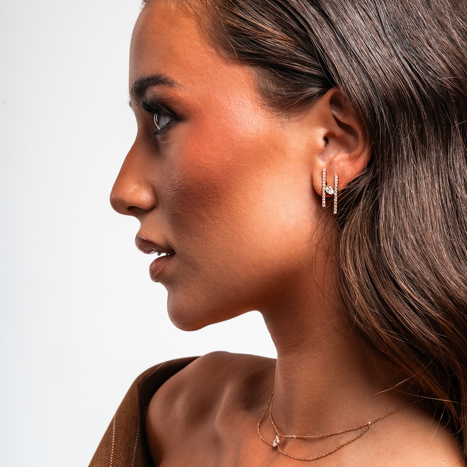Puce d’oreille Just Joy Between en or 750/1000e (18 carats), sertie d’un diamant taille poire ce bijou fait 0.56 carats, poids total 2,4g.